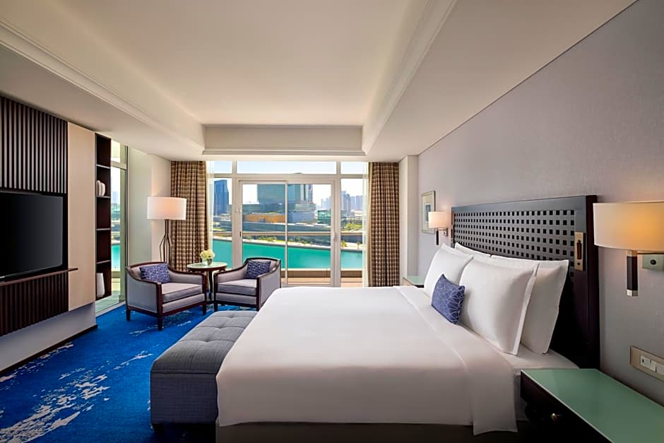 This City View Suite with Balcony has 55sqm of space with a sofa bed. Facilities include daily housekeeping service with evening turndown, fully stocked mini bar on request, personal in-room safe, 32 inch LCD TV, multilingual satellite TV channels including music channels, bathrobes, hairdryer, IDD telephone, individual air temperature control, tea and coffee making facilities, high speed internet connection and laundry services.